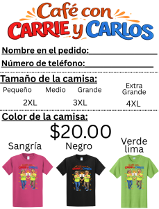 The cost is $20 and ordering is through MVP Custom Tees at 5100 Cleveland S. in Canton OH 44707. Choose either the English or Spanish version in pink, green or black.