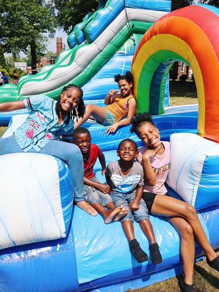 Inflatable water slides, grilled food, dancing, and bicycle giveaways.
